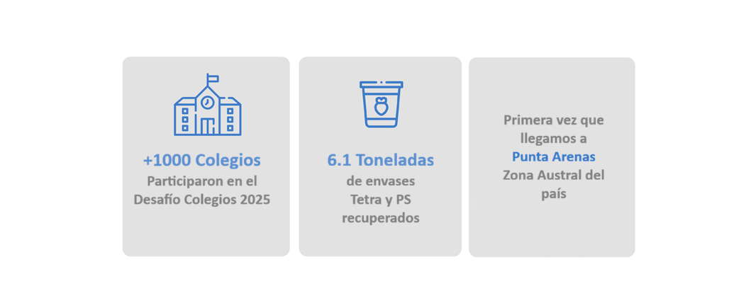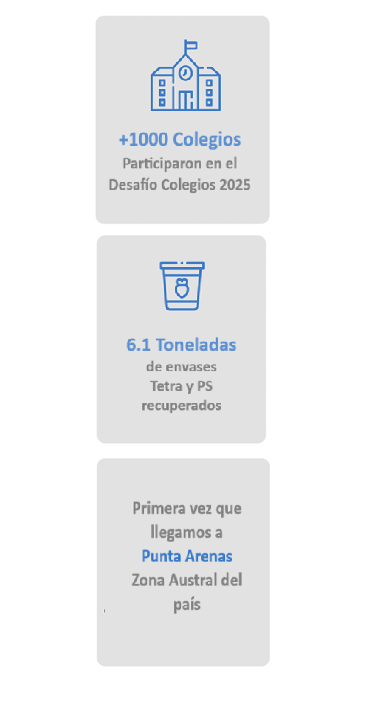 Desde 2022, hemos realizado cuatro desafíos de reciclaje para colegios a lo largo de todo Chile, eso con el objetivo de promover la cultura de reciclaje en los estudiantes. Para participar en este concurso, las comunidades educativas deben recolectar la mayor cantidad de envases de yoghurt, postres, cajas de leche y jugo de cualquier marca y llevarlos al punto limpio más cercano. Durante los dos últimos años, hemos tenido una participación de +1.000 colegios.