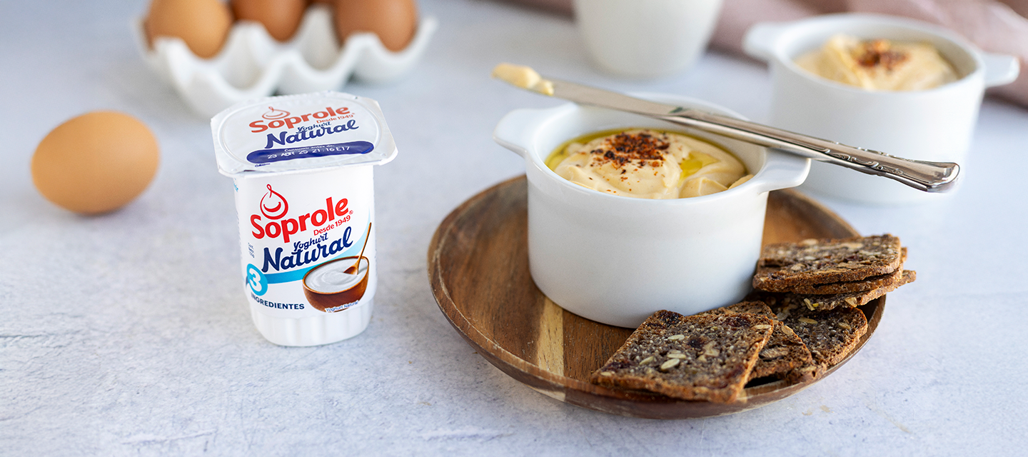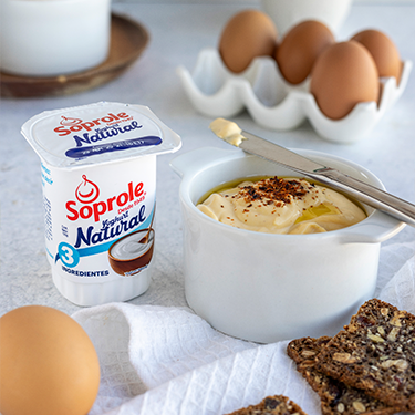 1 Yoghurt Natural 3 Ingredientes Soprole250 ml de aceite de oliva1 huevo duro 1 cucharadita de sal1 pizca de pimienta