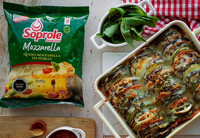 Prepara un Ratatouille delicioso con Queso Mozzarella Soprole. Simple, casero y lleno de sabor. ¡Ideal para compartir!