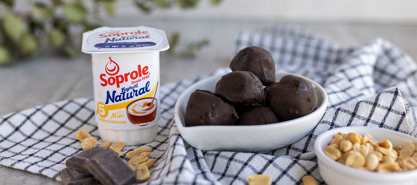 1 plátano 1 Yoghurt 5 Ingredientes Soprole2 cucharadas de mantequilla de maníChocolate para derretir